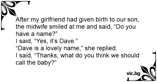 After my girlfriend had given birth to our son, the midwife smiled at me and said, “Do you have a name?”
