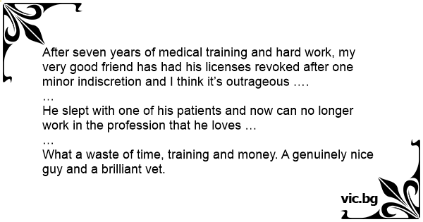 After seven years of medical training and hard work, my very good friend has had his licenses revoked after one minor indiscretion and I think it’s outrageous ….