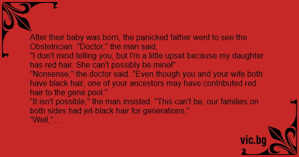 "Nonsense," the doctor said. "Even though you and your wife both have black hair, one of your ancestors may have contributed red hair to the gene pool."