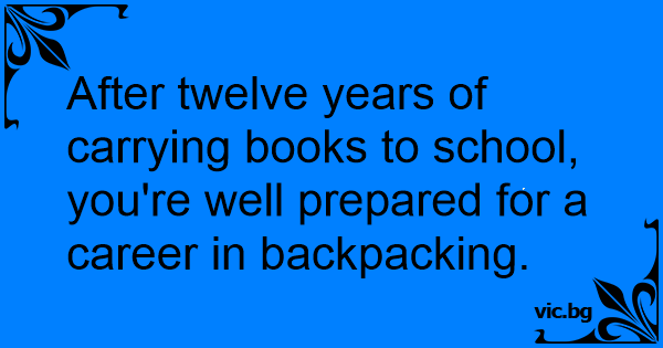 After twelve years of carrying books to school, you're well prepared for a career in backpacking.