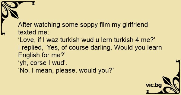 ‘Love, if I waz turkish wud u lern turkish 4 me?’