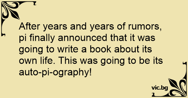 After years and years of rumors, pi finally announced that it was going to write a book about its own life. This was going to be its auto-pi-ography!