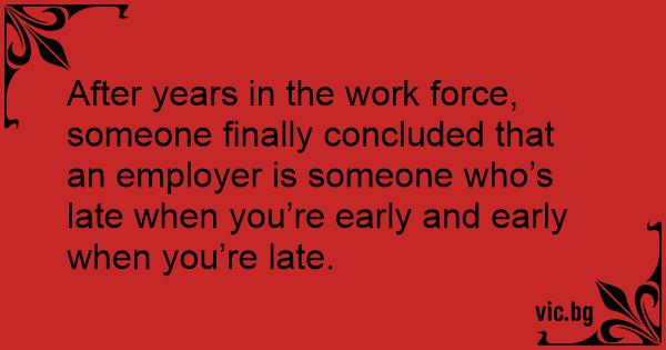 After years in the work force, someone finally concluded that an employer is someone who’s late when you’re early and early when you’re late.