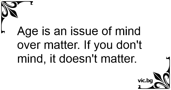 Age is an issue of mind over matter. If you don't mind, it doesn't matter.
