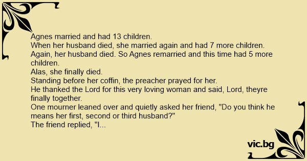 One mourner leaned over and quietly asked her friend, "Do you think he means her first, second or third husband?"
