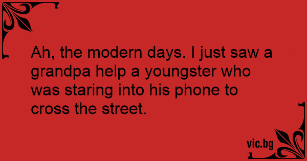 Сегодня видел, как старушка помогала перейти дорогу парнишке, который торчал в своем айфоне.