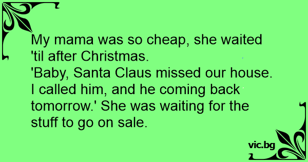 My mama was so cheap, she waited 'til after Christmas.