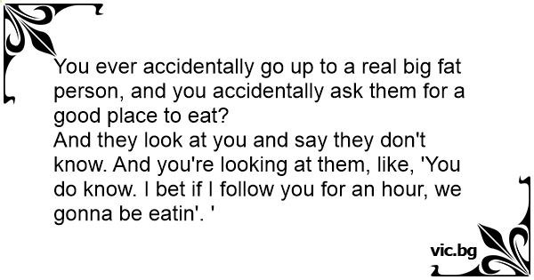 You ever accidentally go up to a real big fат person, and you accidentally ask them for a good place to eat?