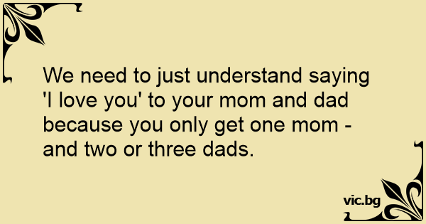 We need to just understand saying 'I love you' to your mom and dad because you only get one mom - and two or three dads.