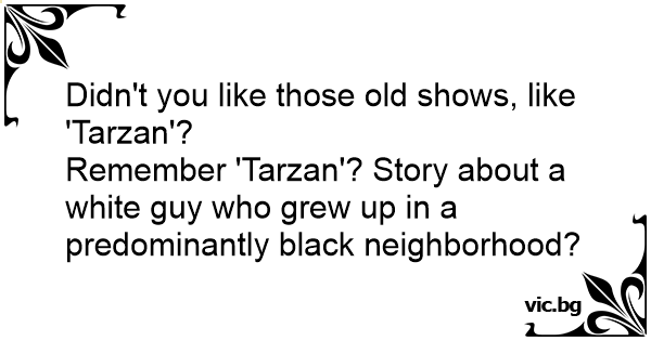 Remember 'Tarzan'? Story about a white guy who grew up in a predominantly black neighborhood?