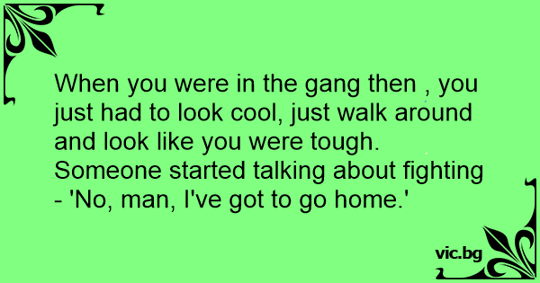 When you were in the gang then , you just had to look cool, just walk around and look like you were tough.