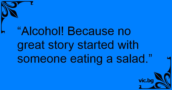 “Alcohol! Because no great story started with someone eating a salad.”