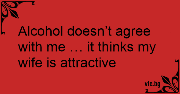 Alcohol doesn’t agree with me … it thinks my wife is attractive
