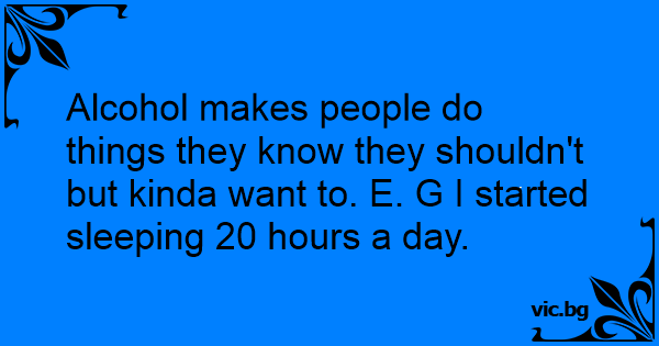 Alcohol makes people do things they know they shouldn't but kinda want to. E. G I started sleeping 20 hours a day.