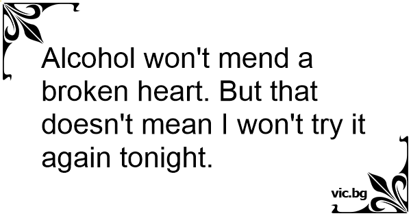 Alcohol won't mend a broken heart. But that doesn't mean I won't try it again tonight.
