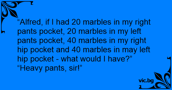 “Alfred, if I had 20 marbles in my right pants pocket, 20 marbles in my left pants pocket, 40 marbles in my right hip pocket and 40 marbles in may left hip pocket - what would I have?”