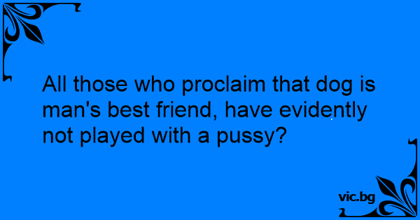All those who proclaim that dog is man's best friend, have evidently not played with a рussy?
