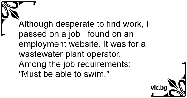 Although desperate to find work, I passed on a job I found on an employment website. It was for a wastewater plant operator.