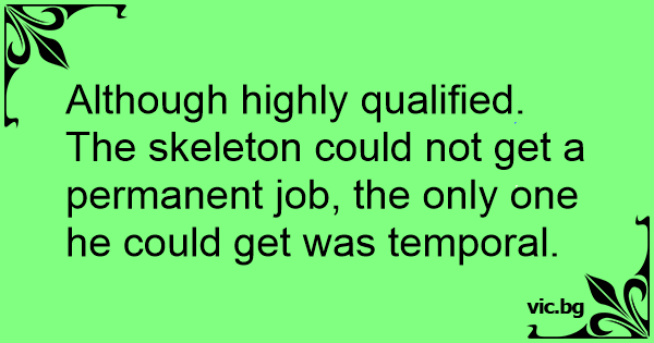 Although highly qualified. The skeleton could not get a permanent job, the only one he could get was temporal.