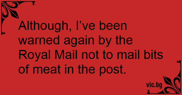 Although, I’ve been warned again by the Royal Mail not to mail bits of meat in the post.