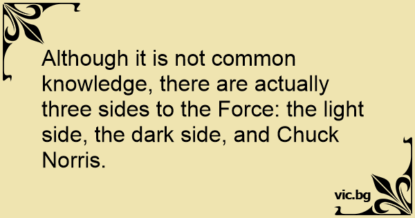 Although it is not common knowledge, there are actually three sides to the Force: the light side, the dark side, and Chuck Norris.