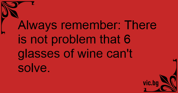 Always remember: There is not problem that 6 glasses of wine can't solve.