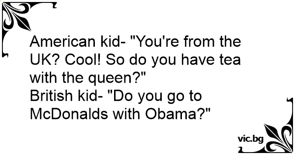 American kid- "You're from the UK? Cool! So do you have tea with the queen?"