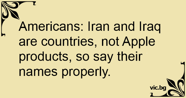 Americans: Iran and Iraq are countries, not Apple products, so say their names properly.