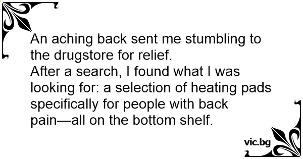 An aching back sent me stumbling to the drugstore for relief.