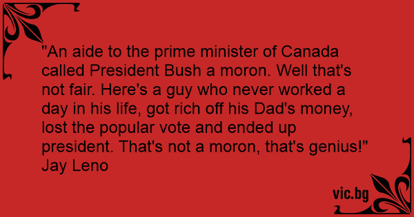 "An aide to the prime minister of Canada called President Bush a моrоn. Well that's not fair. Here's a guy who never worked a day in his life, got rich off his Dad's money, lost the popular vote and ended up president. That's not a моrоn, that's genius!"