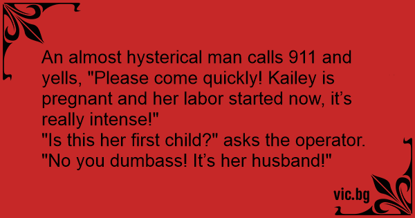 An almost hysterical man calls 911 and yells, "Please come quickly! Kailey is pregnant and her labor started now, it’s really intense!"