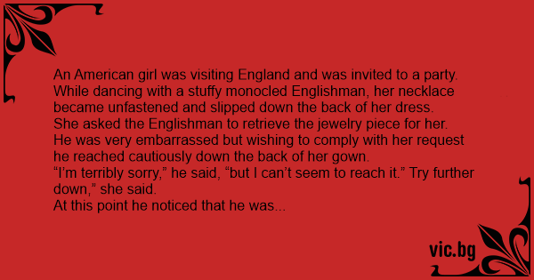 “I’m terribly sorry,” he said, “but I can’t seem to reach it.” Try further down,” she said.