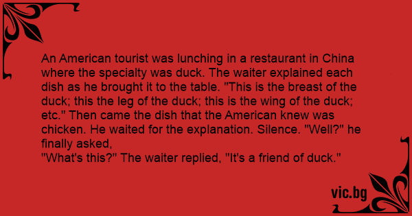 "What's this?" The waiter replied, "It's a friend of duck."