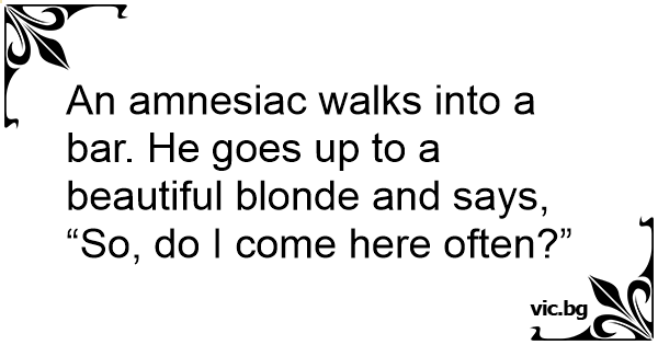 An amnesiac walks into a bar. He goes up to a beautiful blonde and says, “So, do I come here often?”