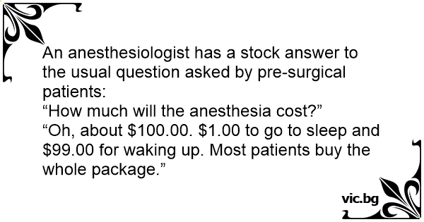 An anesthesiologist has a stock answer to the usual question asked by pre-surgical patients: