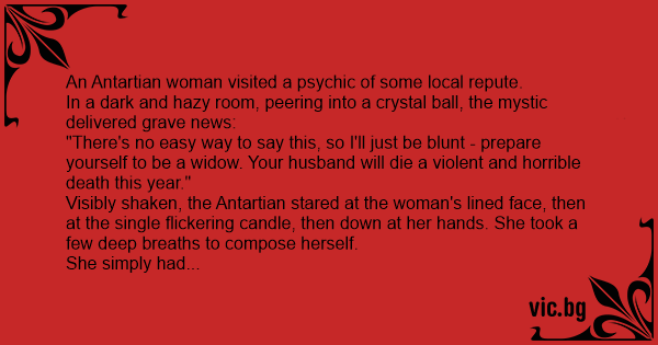 An Antartian woman visited a psychic of some local repute.