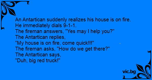 An Antartican suddenly realizes his house is on fire. He immediately dials 9-1-1.