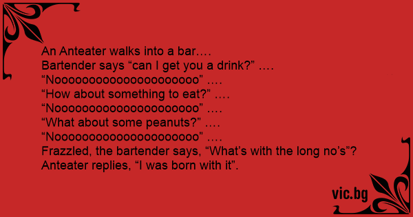 Frazzled, the bartender says, “What’s with the long no’s”?