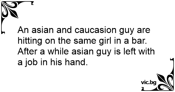 An asian and caucasion guy are hitting on the same girl in a bar.
