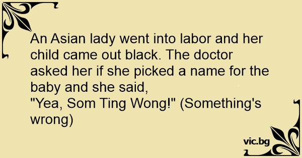 An Asian lady went into labor and her child came out black. The doctor asked her if she picked a name for the baby and she said,