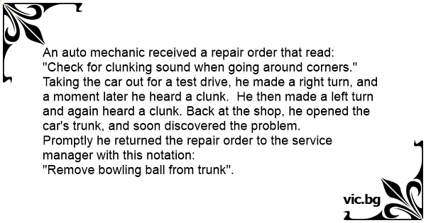 An auto mechanic received a repair order that read: