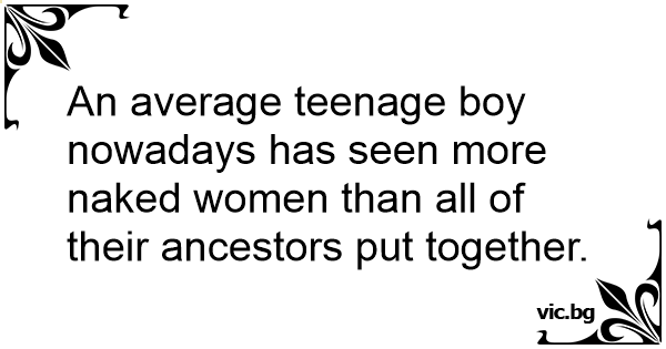 An average teenage boy nowadays has seen more nакеd women than all of their ancestors put together.