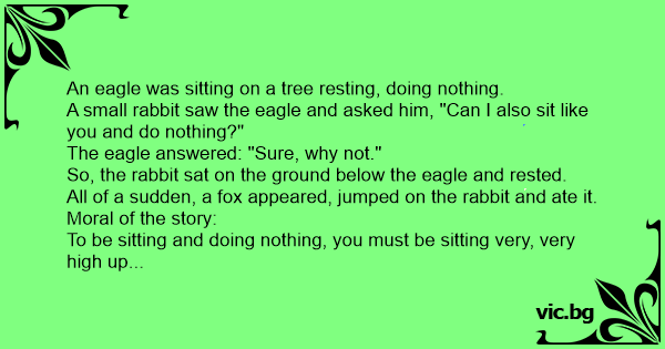 A small rabbit saw the eagle and asked him, "Can I also sit like you and do nothing?"