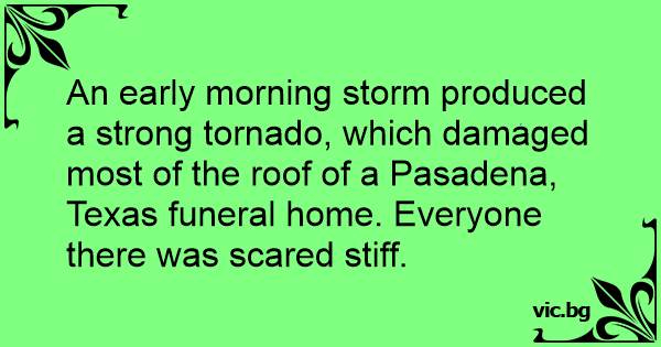 An early morning storm produced a strong tornado, which damaged most of the roof of a Pasadena, Texas funeral home. Everyone there was scared stiff.