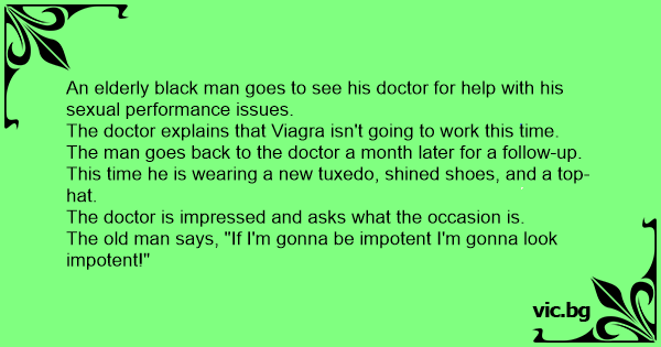 An elderly black man goes to see his doctor for help with his sеxuаl performance issues.