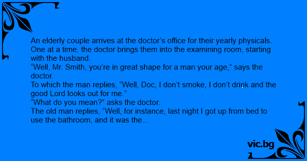 The wife comes in and the doctor says, “Mrs. Smith, you’re in great shape for a woman your age.”