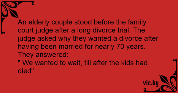 An elderly couple stood before the family court judge after a long divorce trial. The judge asked why they wanted a divorce after having been married for nearly 70 years. They answered: