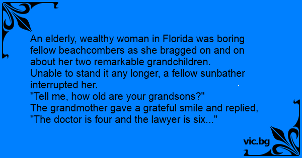An elderly, wealthy woman in Florida was boring fellow beachcombers as she bragged on and on about her two remarkable grandchildren.