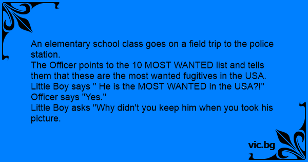 Little Boy says " He is the MOST WANTED in the USA?!" Officer says "Yes."