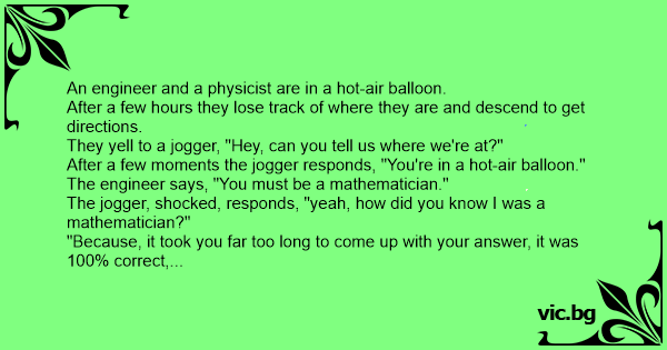 After a few moments the jogger responds, "You're in a hot-air balloon."
